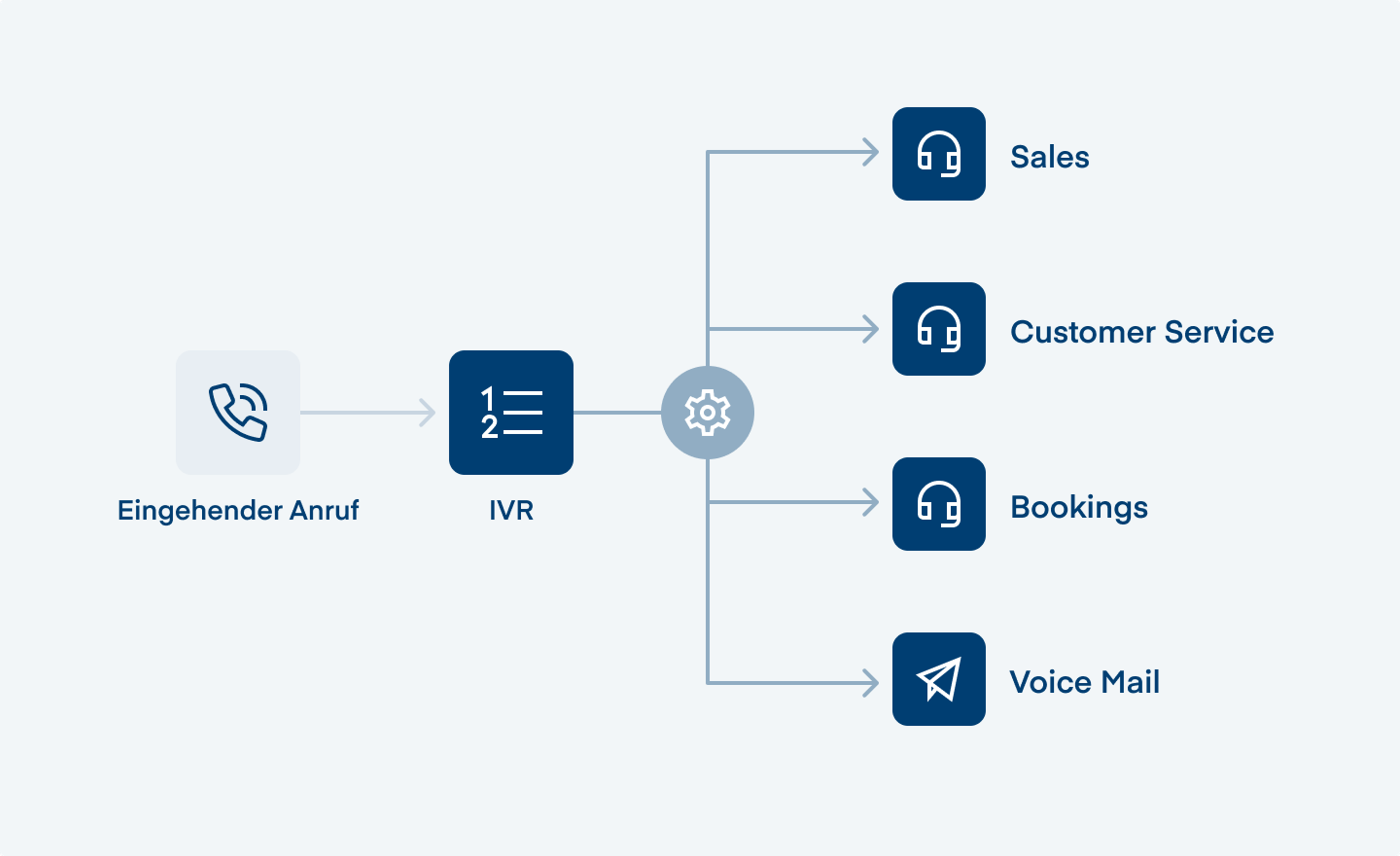 Darüber hinaus bietet die IVR automatisierte Optionen für Selbstbedienungsaufgaben wie Terminbuchungen oder Informationsanfragen. Dies entlastet Agents, spart Ressourcen und ermöglicht es Anrufern, einfache Anliegen sofort zu klären – eine effiziente Lösung, die sowohl Kundenzufriedenheit als auch Produktivität steigert.